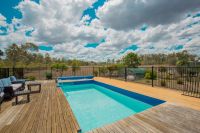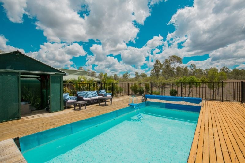 Kookaburra Park Eco Village is set on a 485-acre ecosystem 6km from Gin Gin and just under 50km from Bundaberg. This lovely 3 bedroom home is situated on 4066m2, surrounded by gardens and native Australian wildlife, perfect to sit and watch from the veranda at both the front and rear. The open plan living is complimented by the polished timber floors and cathedral high raked ceilings. The outdoor entertaining area is divine and perfect for all year round swimming and hosting guests.Main Features: